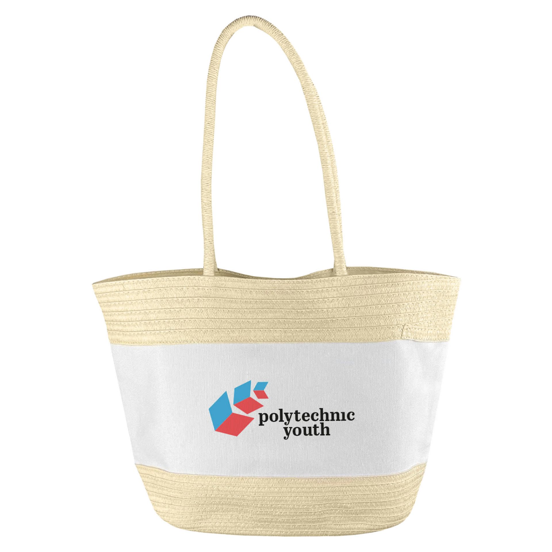 Durable and chic our bag combines kraft paper and poly-canvas for a stylish blend. The interior boasts a 100% polyester lining while a small pouch with a magnetic closure adds functionality. The shoulder-length kraft paper-wrapped rope handles provide a secure hold for up to 5kg. Perfect for work and lifestyle needs this bag seamlessly merges fashion and functionality.